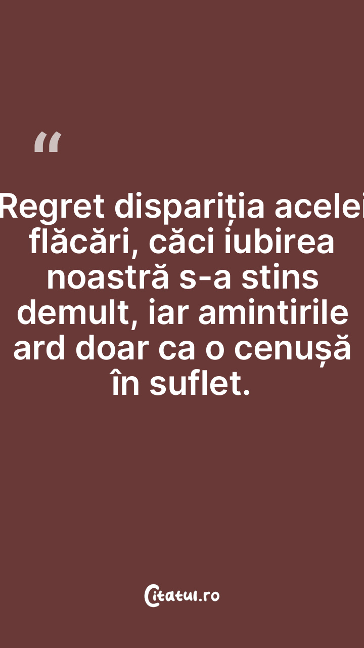 Regret dispariția acelei flăcări, căci iubirea noa...