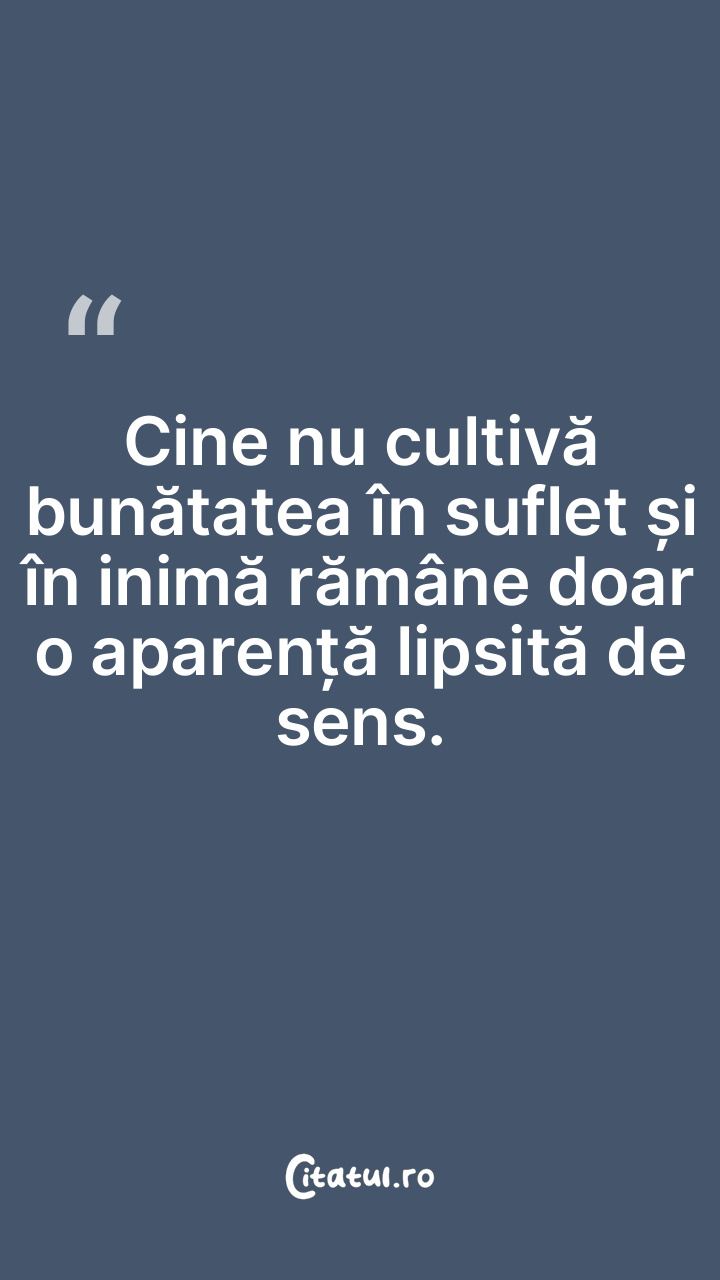 Cine nu cultivă bunătatea în suflet și în inimă rămâne doar o aparență lipsită de sens.