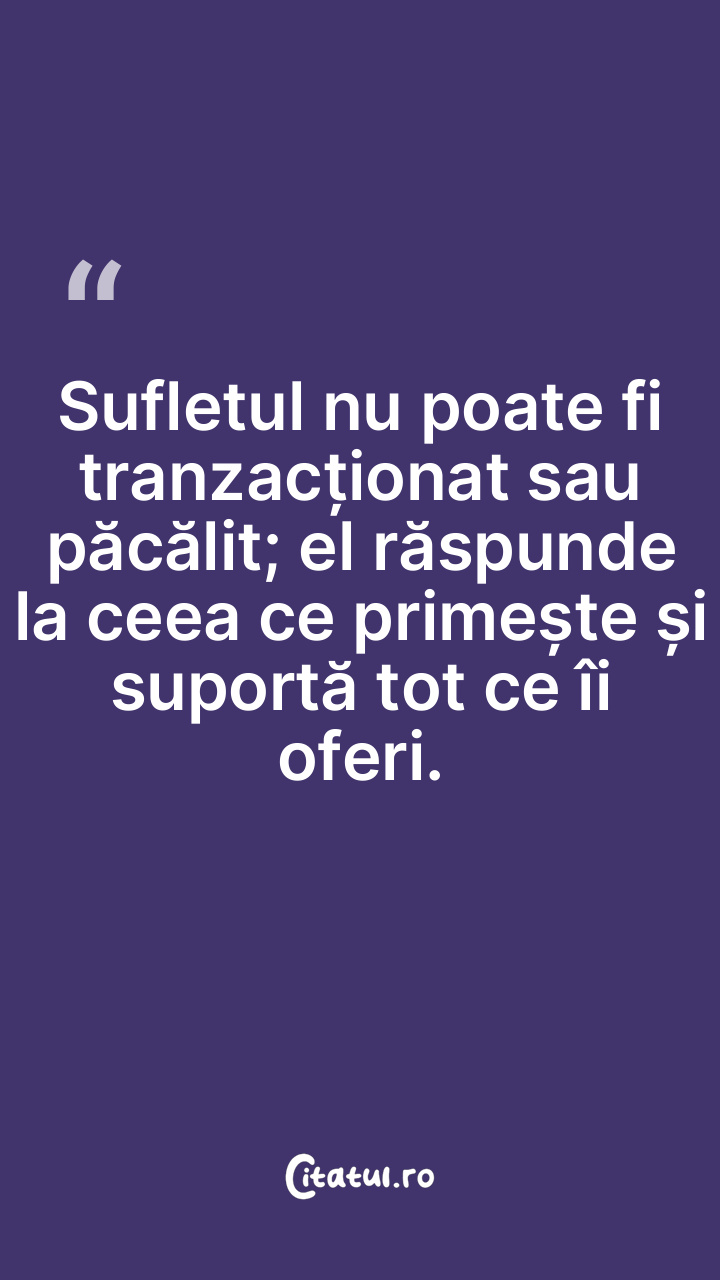 Sufletul nu poate fi tranzacționat sau păcălit; el răspunde la ceea ce primește și suportă tot ce îi oferi.