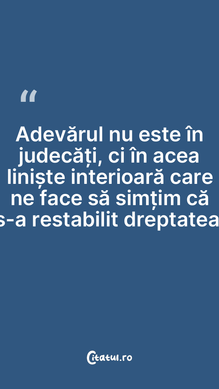 Adevărul nu este în judecăți, ci în acea liniște interioară care ne face să simțim că s-a restabilit dreptatea.
