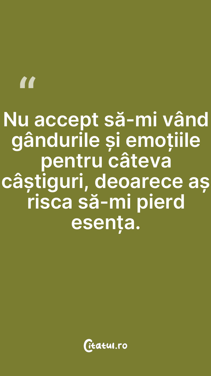 Nu accept să-mi vând gândurile și emoțiile pentru câteva câștiguri, deoarece aș risca să-mi pierd esența.