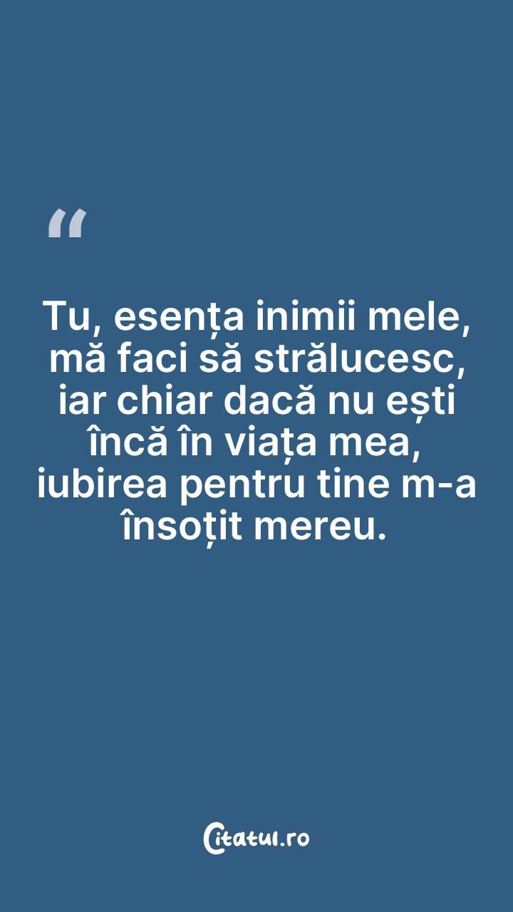 Tu, esența inimii mele, mă faci să strălucesc, iar chiar dacă nu ești încă în viața mea, iubirea pentru tine m-a însoțit mereu.