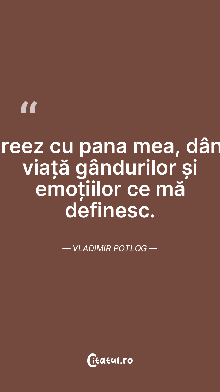Creez cu pana mea, dând viață gândurilor și emoțiilor ce mă definesc. Vladimir Potlog