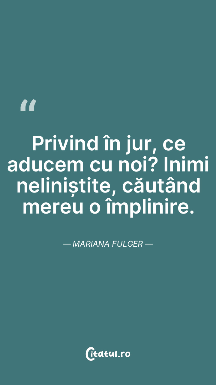 Privind în jur, ce aducem cu noi? Inimi neliniștite, căutând mereu o împlinire. Mariana Fulger