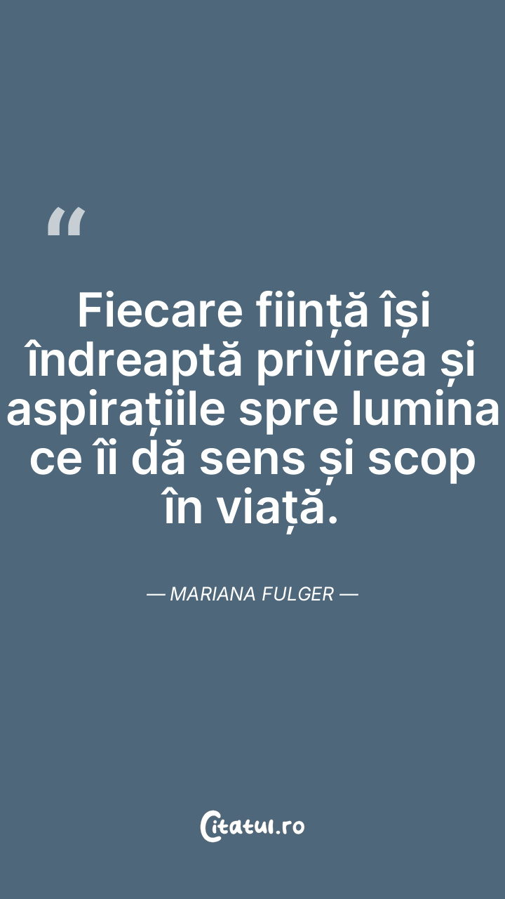 Fiecare ființă își îndreaptă privirea și aspirațiile spre lumina ce îi dă sens și scop în viață. Mariana Fulger