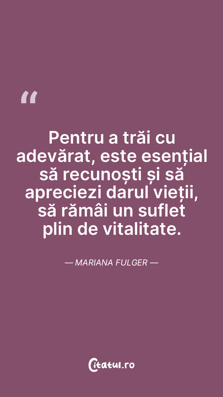 Pentru a trăi cu adevărat, este esențial să recunoști și să apreciezi darul vieții, să rămâi un suflet plin de vitalitate. Mariana Fulger