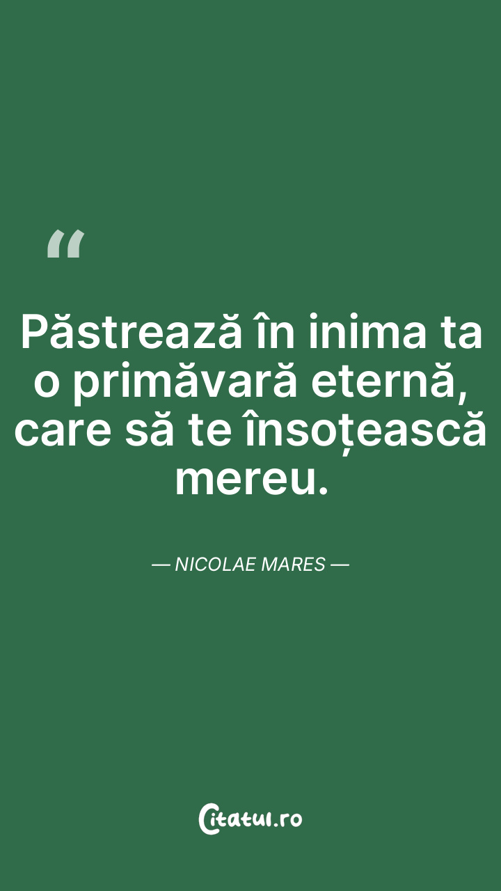 Păstrează în inima ta o primăvară eternă, care să te însoțească mereu. Nicolae Mares
