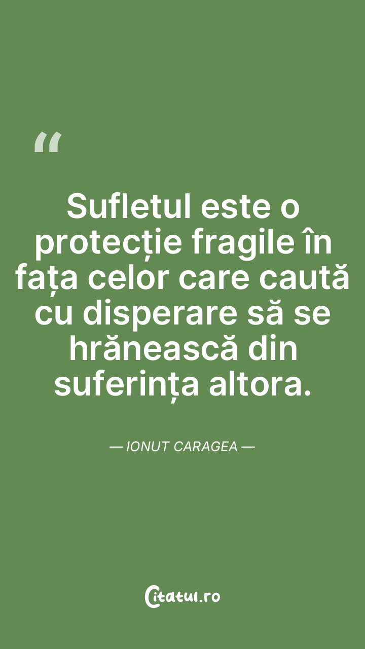 Sufletul este o protecție fragile în fața celor care caută cu disperare să se hrănească din suferința altora. Ionut Caragea