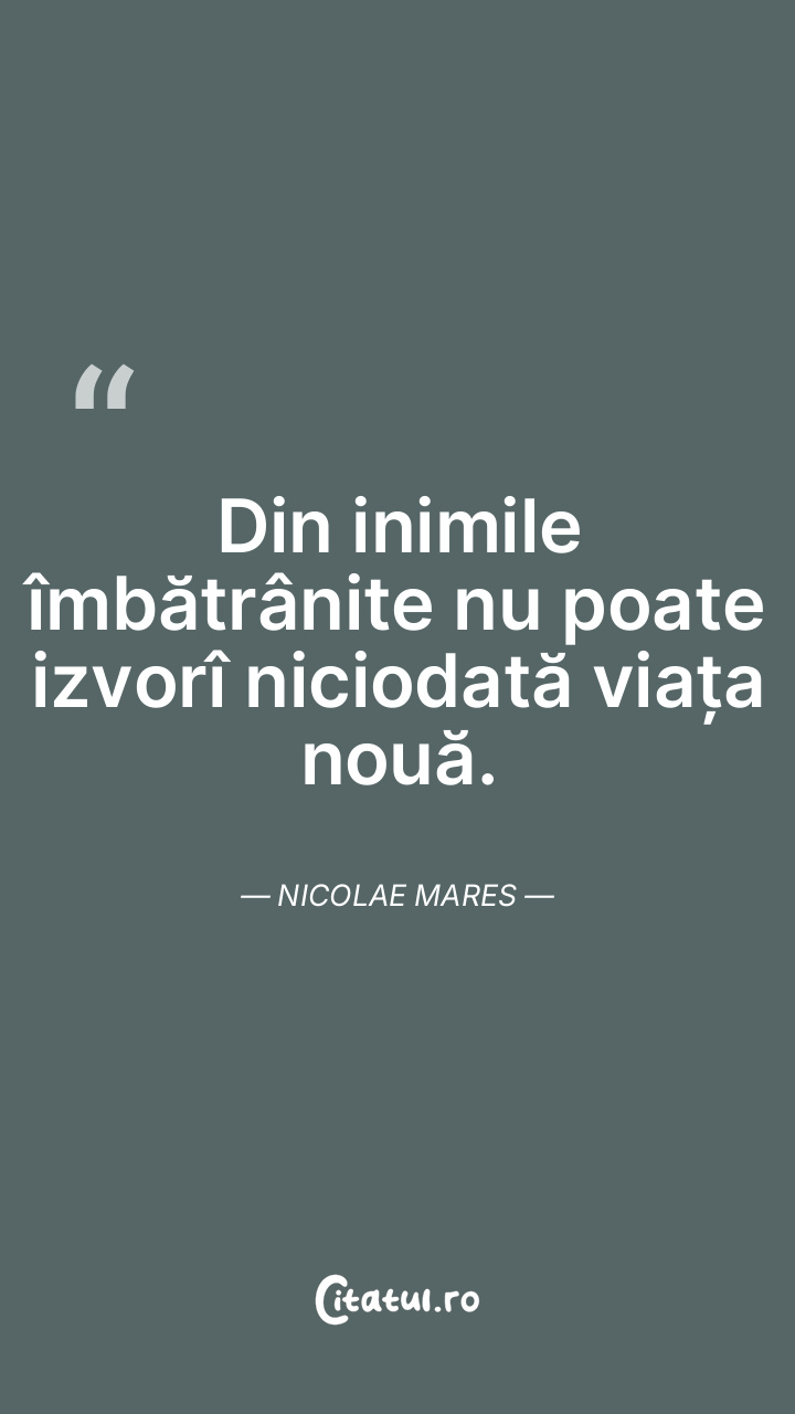 Din inimile îmbătrânite nu poate izvorî niciodată viața nouă. Nicolae Mares