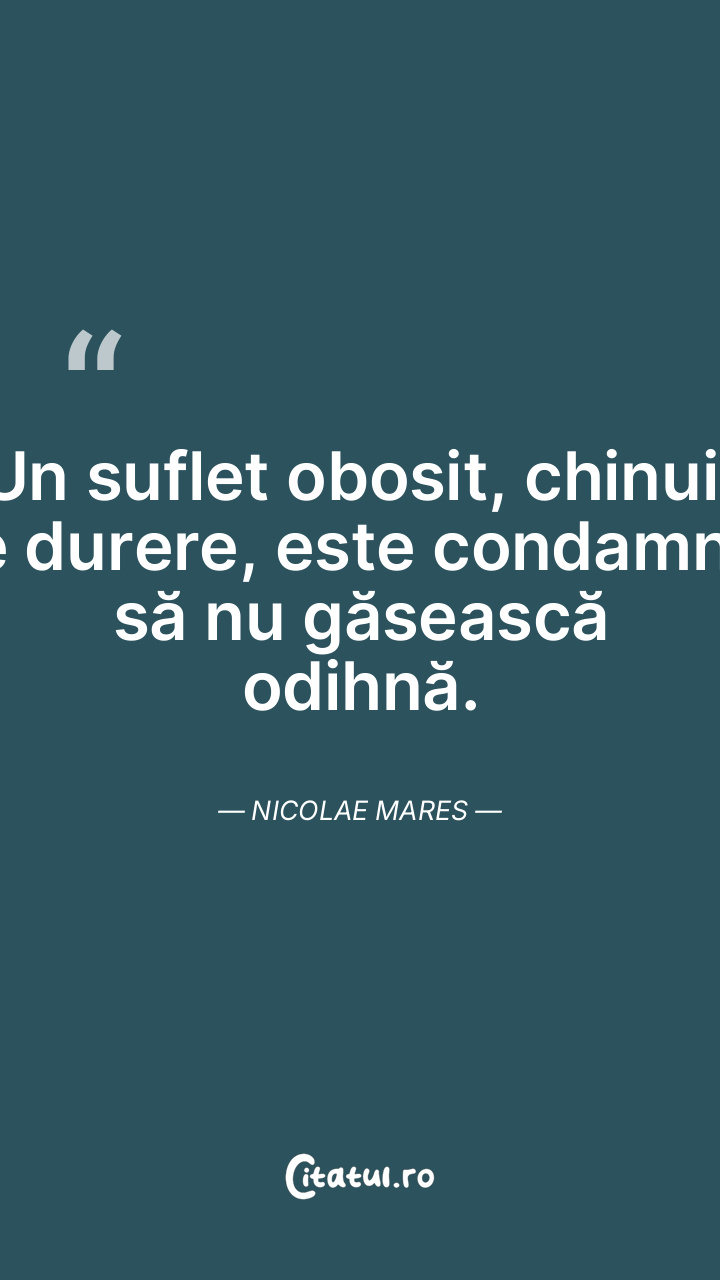 Un suflet obosit, chinuit de durere, este condamnat să nu găsească odihnă. Nicolae Mares
