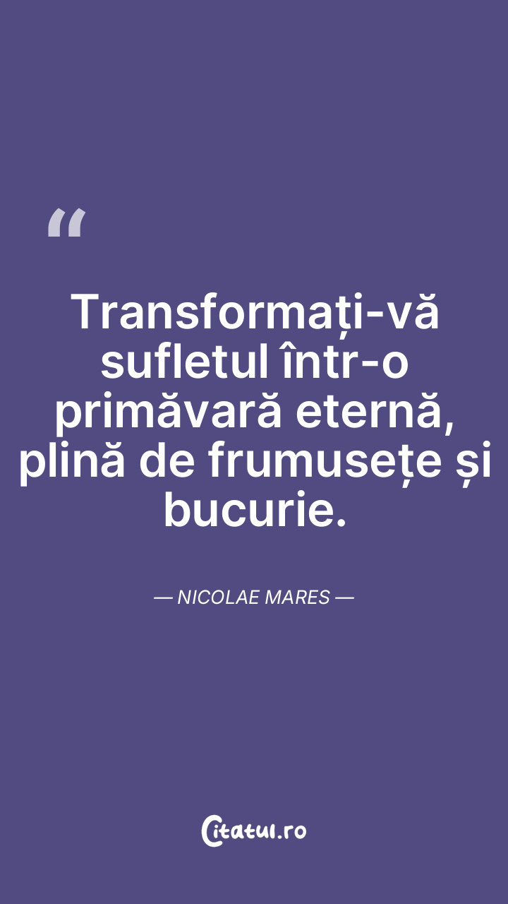 Transformați-vă sufletul într-o primăvară eternă, plină de frumusețe și bucurie. Nicolae Mares
