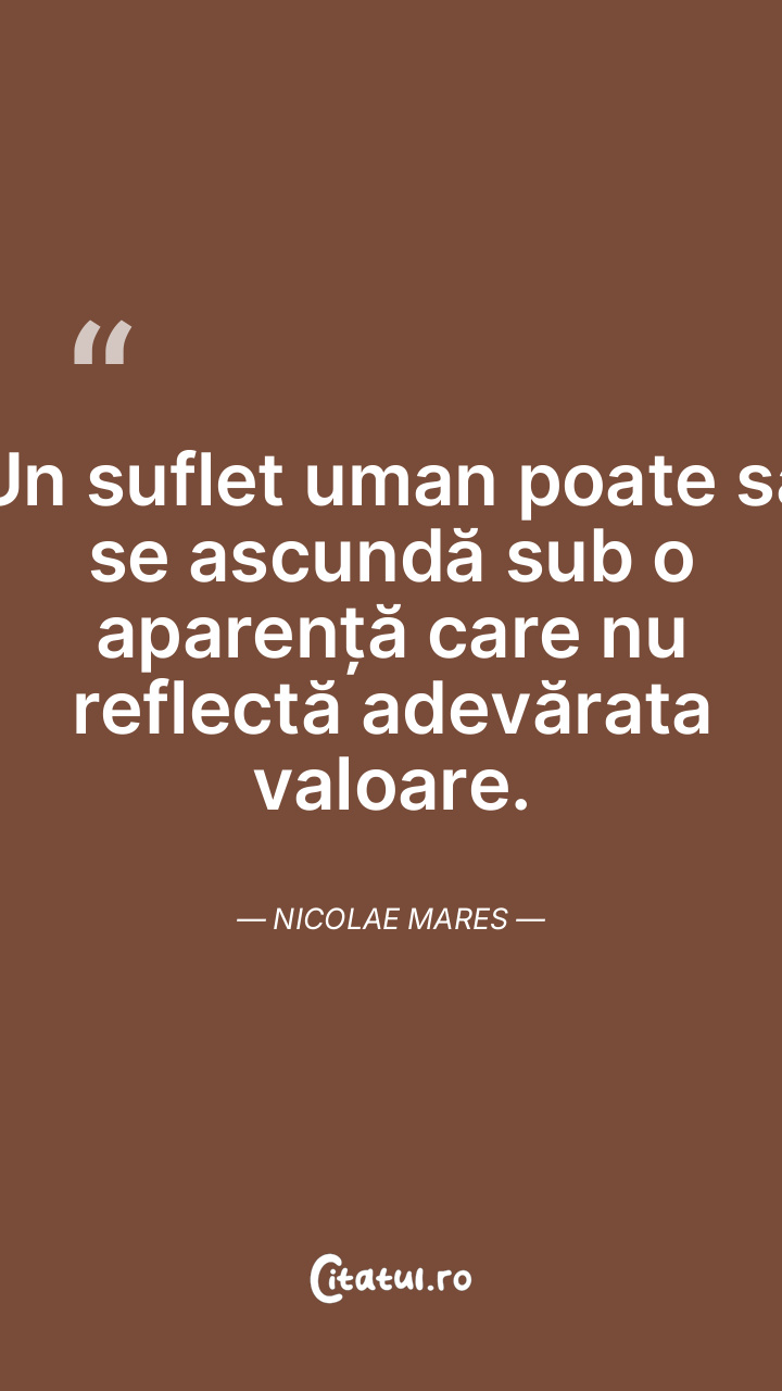 Un suflet uman poate să se ascundă sub o aparență care nu reflectă adevărata valoare. Nicolae Mares