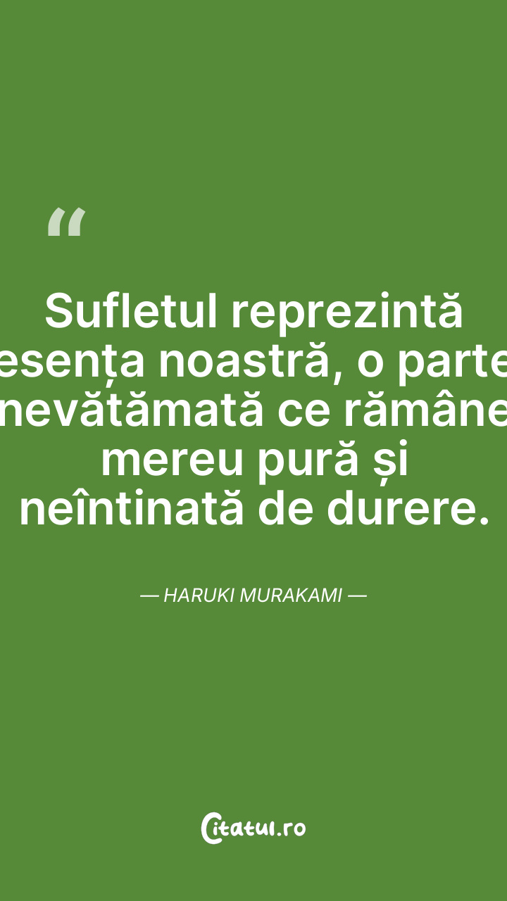 Sufletul reprezintă esența noastră, o parte nevătămată ce rămâne mereu pură și neîntinată de durere. Haruki Murakami