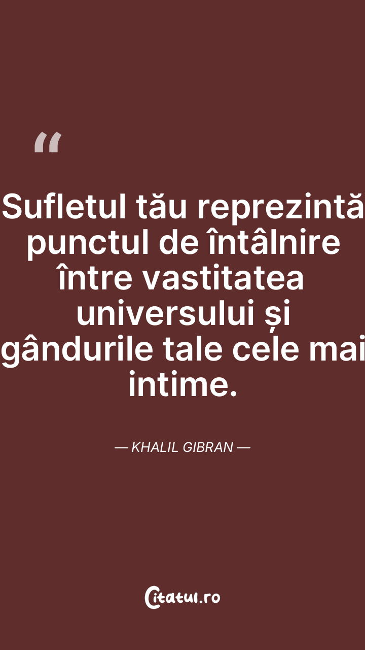 Sufletul tău reprezintă punctul de întâlnire între vastitatea universului și gândurile tale cele mai intime. Khalil Gibran