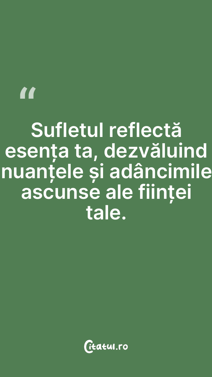 Sufletul reflectă esența ta, dezvăluind nuanțele și adâncimile ascunse ale ființei tale.