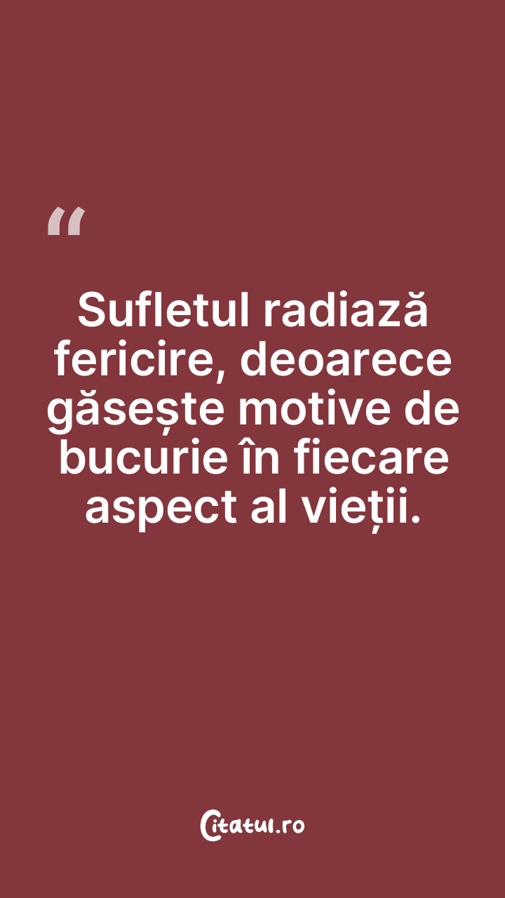Sufletul radiază fericire, deoarece găsește motive de bucurie în fiecare aspect al vieții.