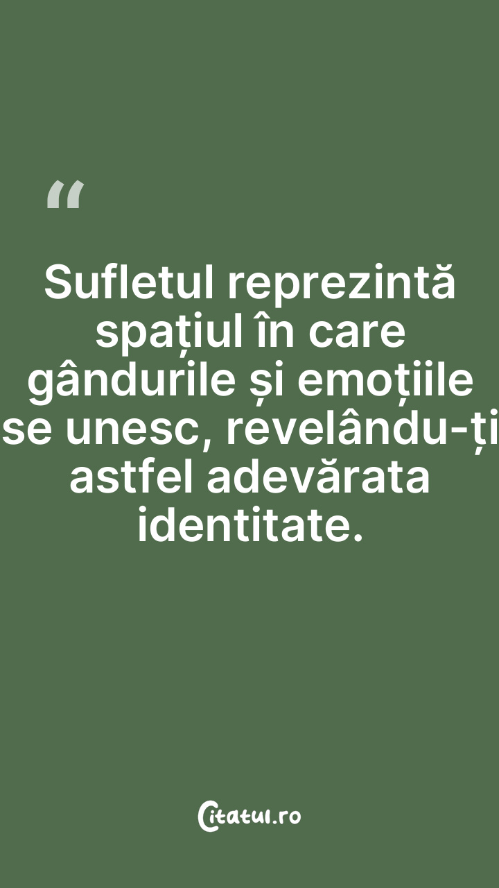 Sufletul reprezintă spațiul în care gândurile și emoțiile se unesc, revelându-ți astfel adevărata identitate.