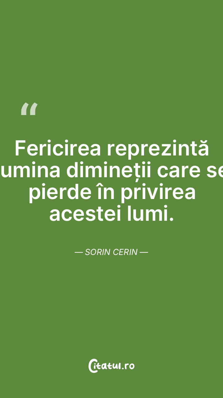 Fericirea reprezintă lumina dimineții care se pierde în privirea acestei lumi. Sorin Cerin
