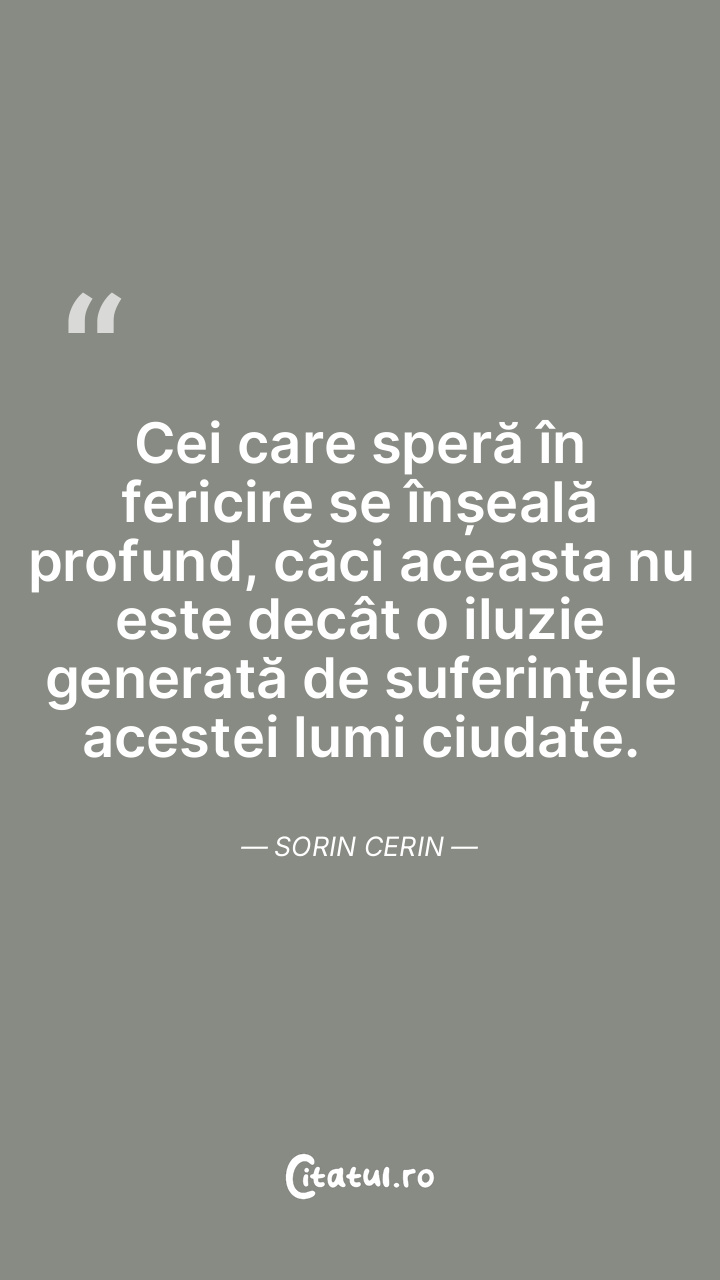 Cei care speră în fericire se înșeală profund, căci aceasta nu este decât o iluzie generată de suferințele acestei lumi ciudate. Sorin Cerin