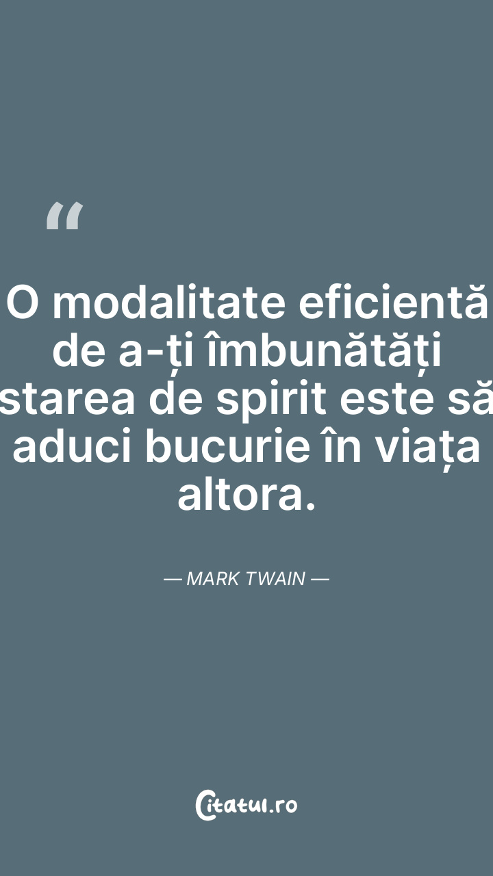 O modalitate eficientă de a-ți îmbunătăți starea de spirit este să aduci bucurie în viața altora. Mark Twain