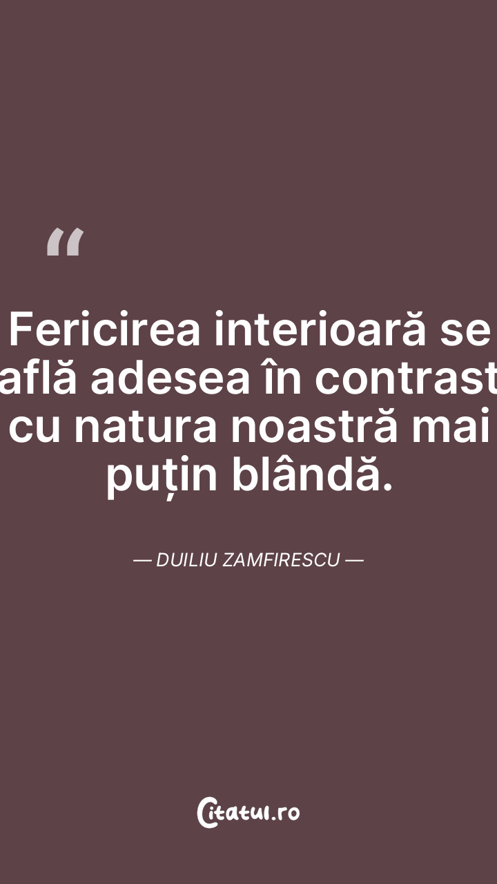 Fericirea interioară se află adesea în contrast cu natura noastră mai puțin blândă. Duiliu Zamfirescu