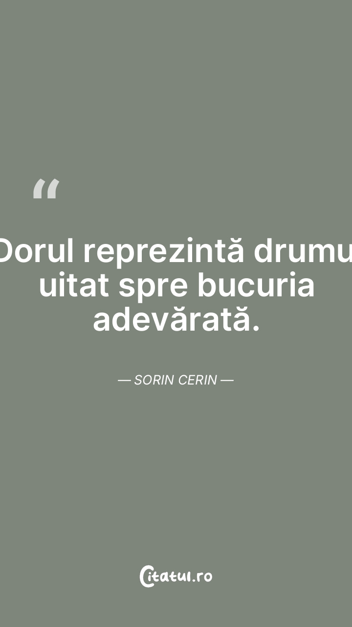 Dorul reprezintă drumul uitat spre bucuria adevărată. Sorin Cerin
