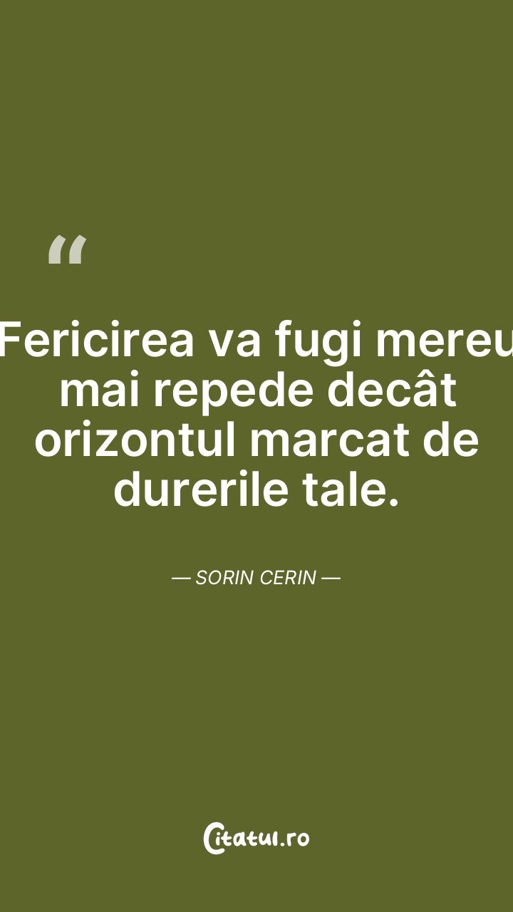 Fericirea va fugi mereu mai repede decât orizontul marcat de durerile tale. Sorin Cerin