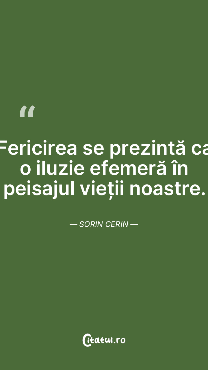 Fericirea se prezintă ca o iluzie efemeră în peisajul vieții noastre. Sorin Cerin