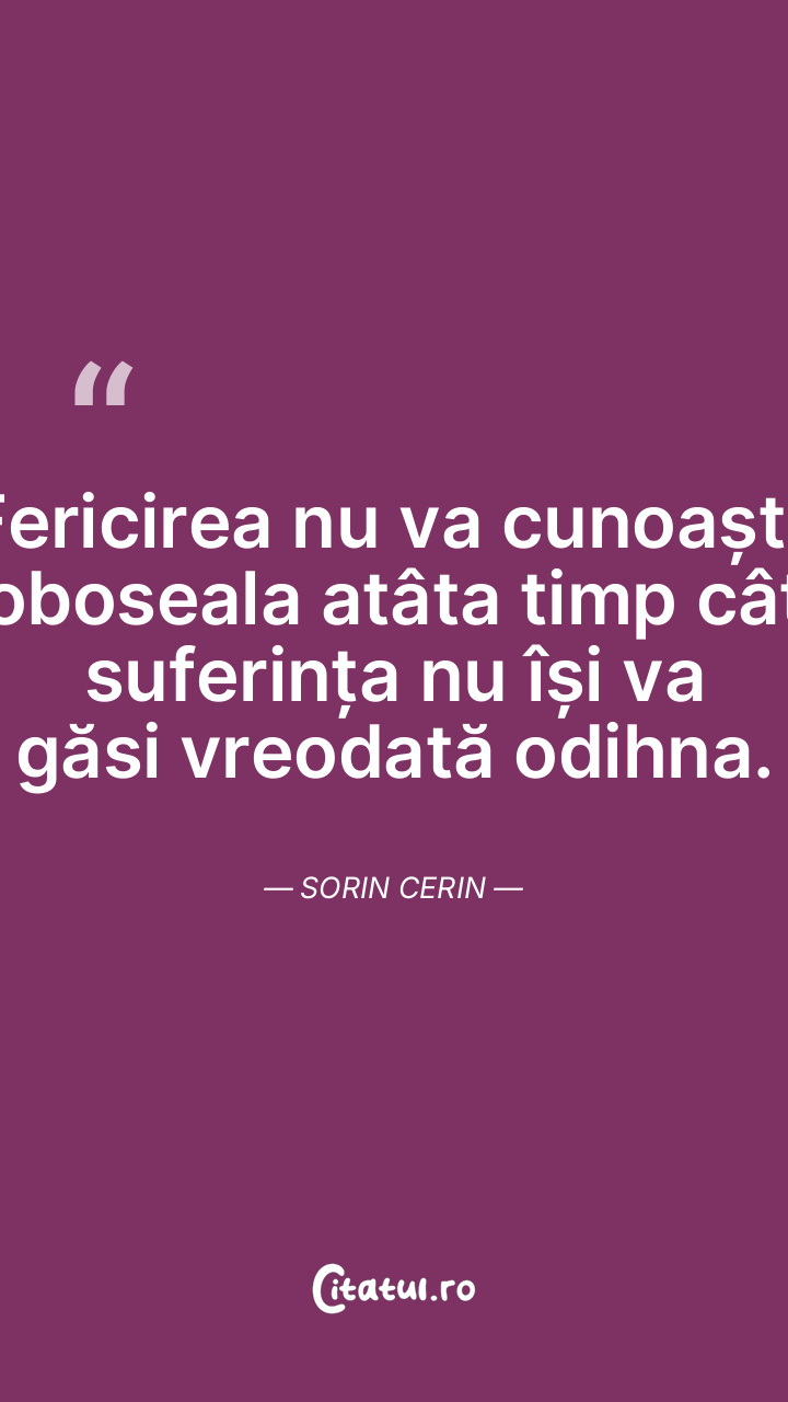 Fericirea nu va cunoaște oboseala atâta timp cât suferința nu își va găsi vreodată odihna. Sorin Cerin
