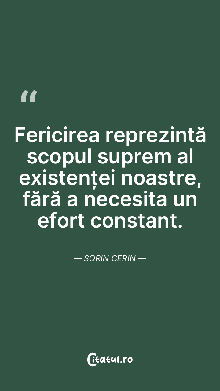 Fericirea reprezintă scopul suprem al existenței noastre, fără a necesita un efort constant. Sorin Cerin