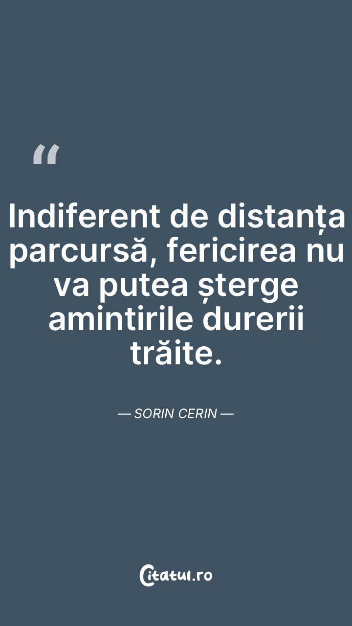 Indiferent de distanța parcursă, fericirea nu va putea șterge amintirile durerii trăite. Sorin Cerin