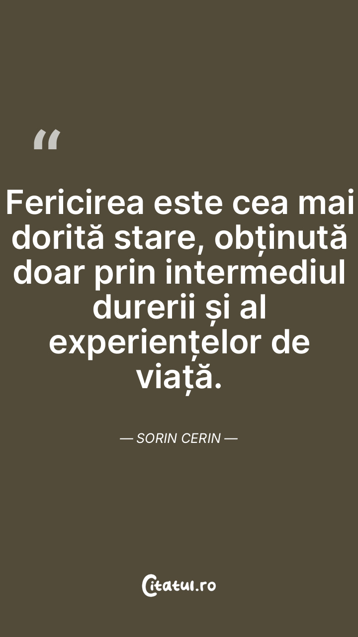 Fericirea este cea mai dorită stare, obținută doar prin intermediul durerii și al experiențelor de viață. Sorin Cerin