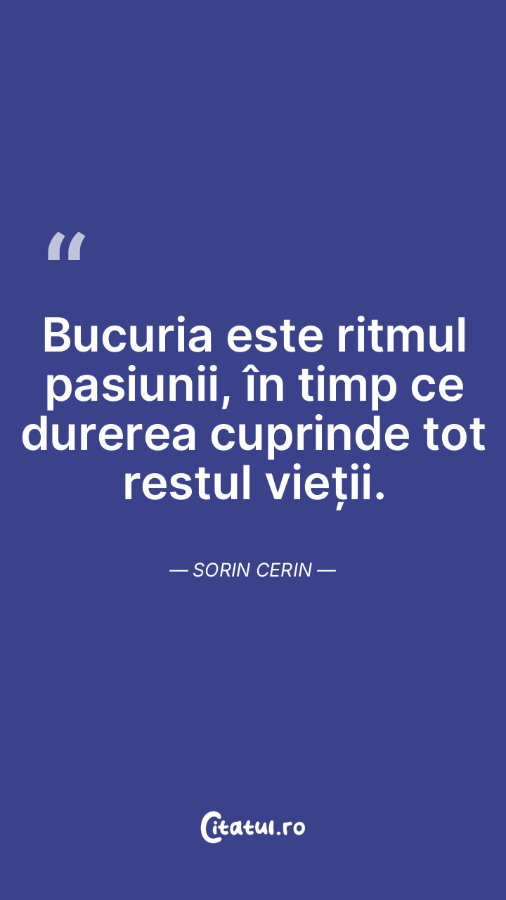 Bucuria este ritmul pasiunii, în timp ce durerea cuprinde tot restul vieții. Sorin Cerin