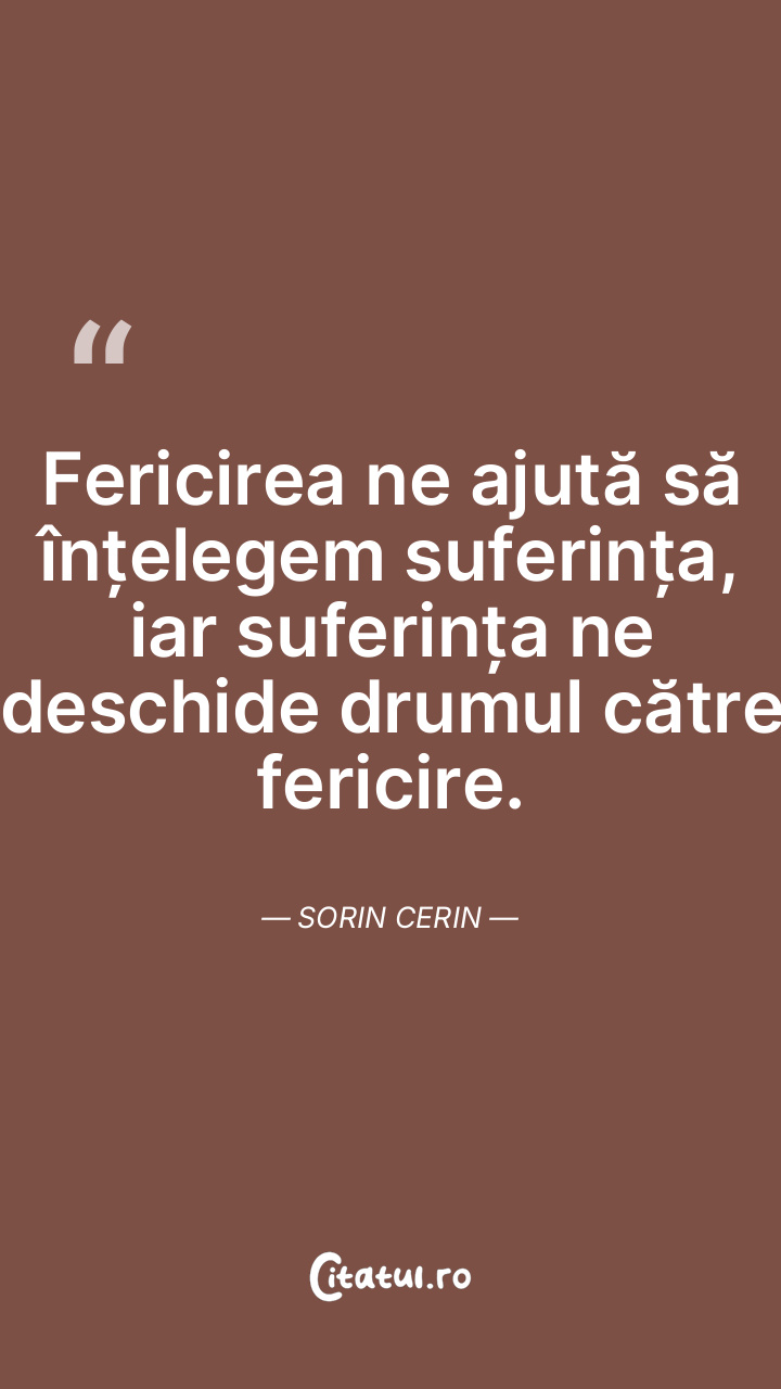 Fericirea ne ajută să înțelegem suferința, iar suferința ne deschide drumul către fericire. Sorin Cerin