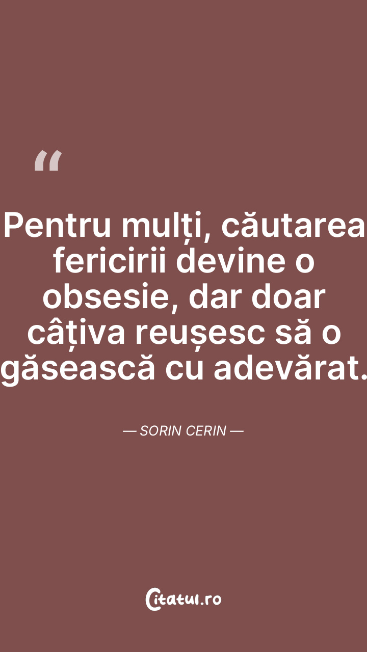 Pentru mulți, căutarea fericirii devine o obsesie, dar doar câțiva reușesc să o găsească cu adevărat. Sorin Cerin
