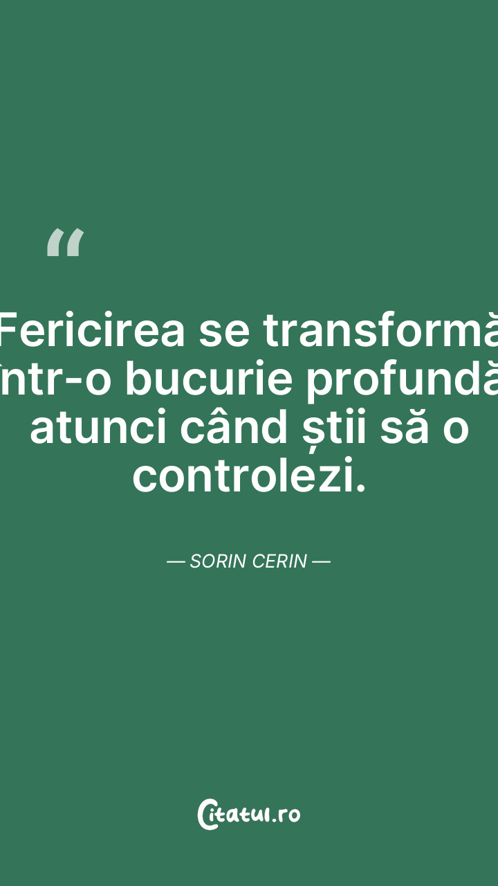 Fericirea se transformă într-o bucurie profundă atunci când știi să o controlezi. Sorin Cerin