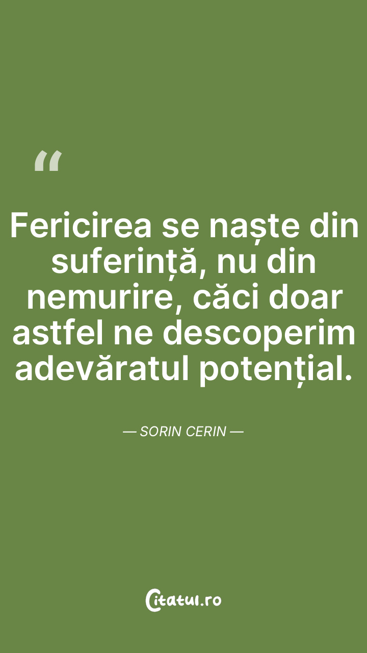 Fericirea se naște din suferință, nu din nemurire, căci doar astfel ne descoperim adevăratul potențial. Sorin Cerin