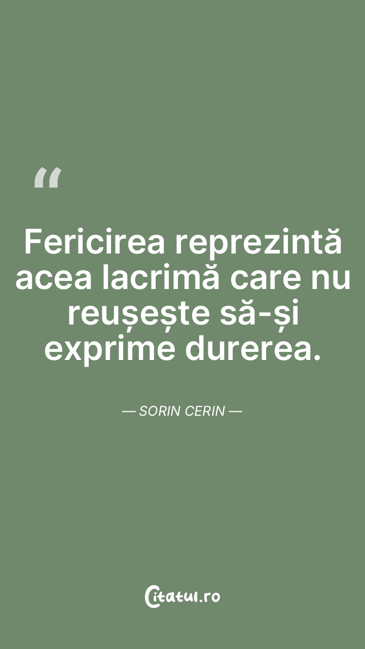 Fericirea reprezintă acea lacrimă care nu reușește să-și exprime durerea. Sorin Cerin
