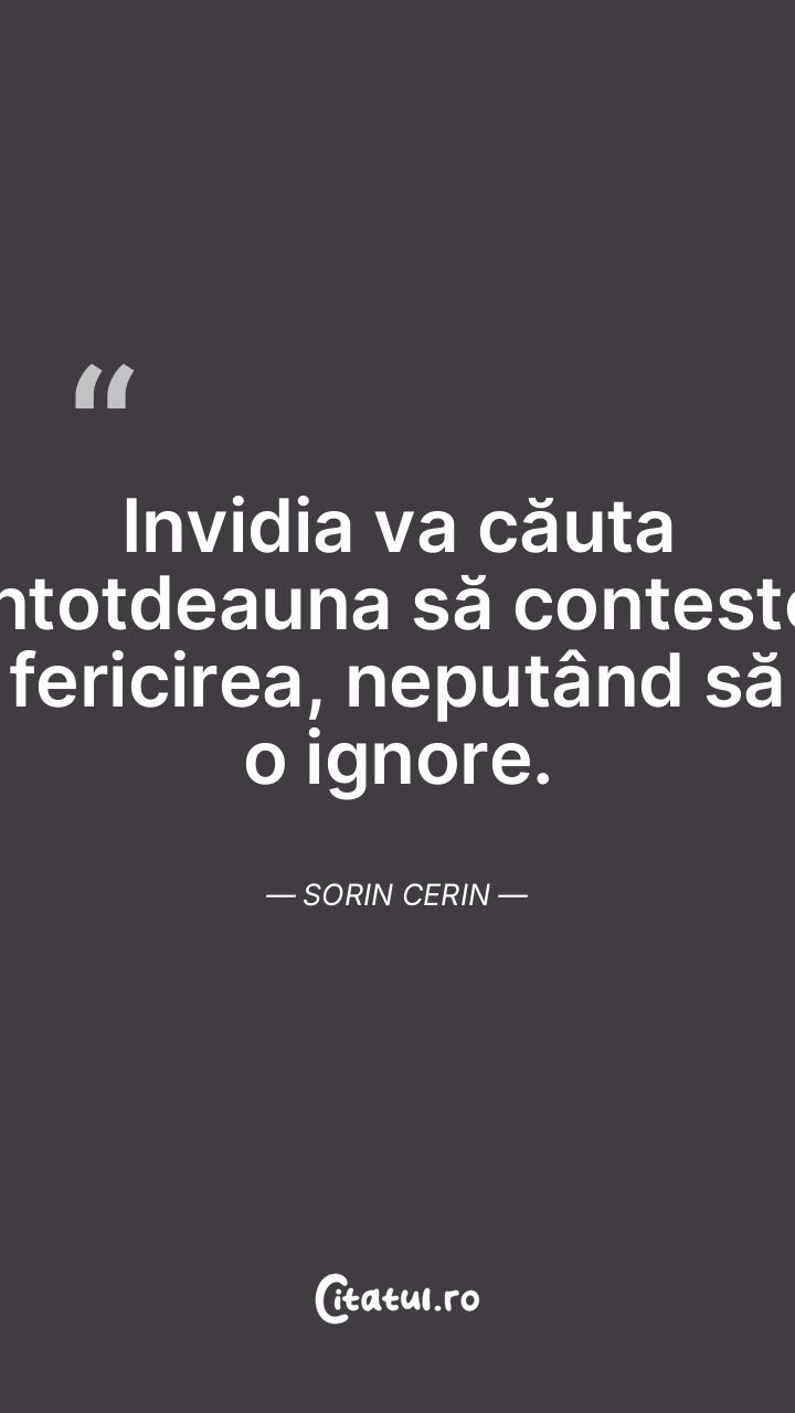 Invidia va căuta întotdeauna să conteste fericirea, neputând să o ignore. Sorin Cerin