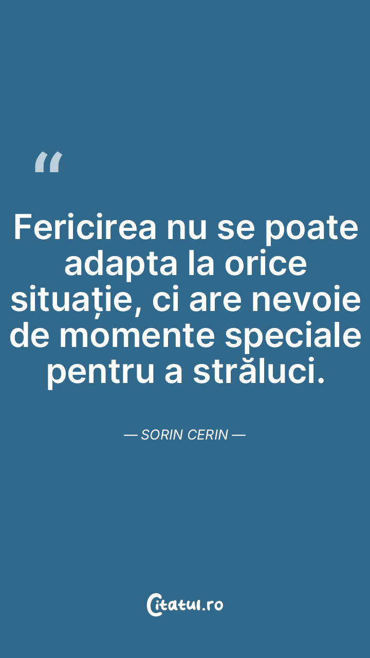 Fericirea nu se poate adapta la orice situație, ci are nevoie de momente speciale pentru a străluci. Sorin Cerin