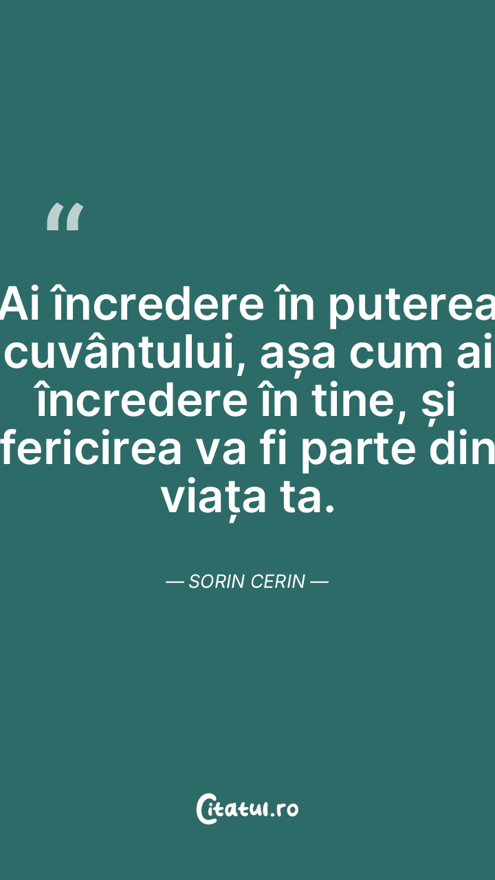 Ai încredere în puterea cuvântului, așa cum ai încredere în tine, și fericirea va fi parte din viața ta. Sorin Cerin