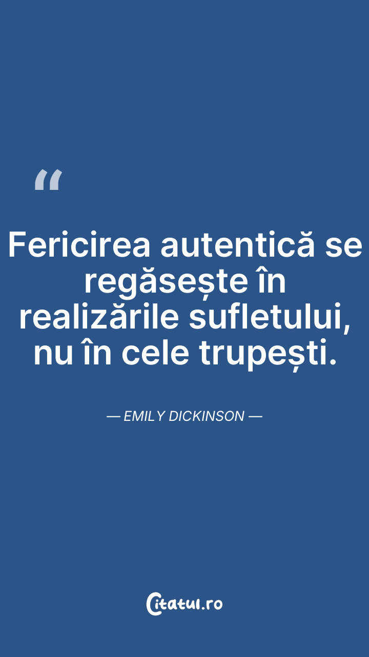 Fericirea autentică se regăsește în realizările sufletului, nu în cele trupești. Emily Dickinson