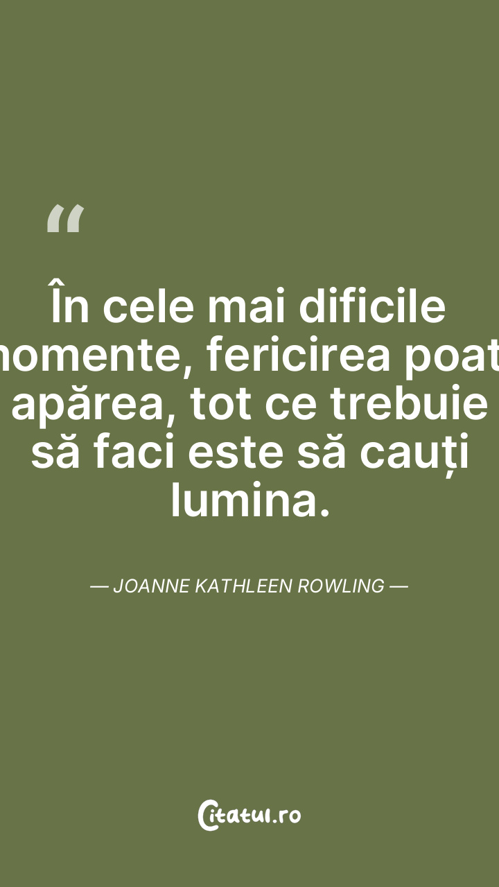 În cele mai dificile momente, fericirea poate apărea, tot ce trebuie să faci este să cauți lumina. Joanne Kathleen Rowling
