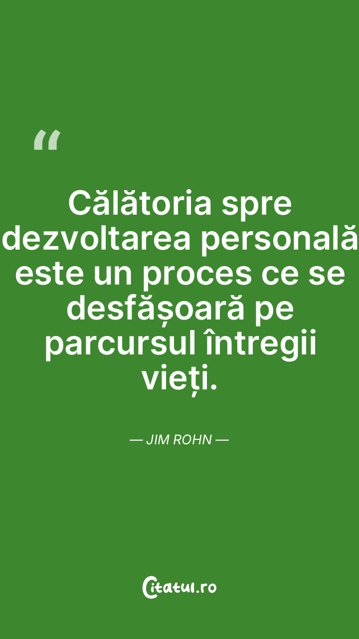 Călătoria spre dezvoltarea personală este un proces ce se desfășoară pe parcursul întregii vieți. Jim Rohn