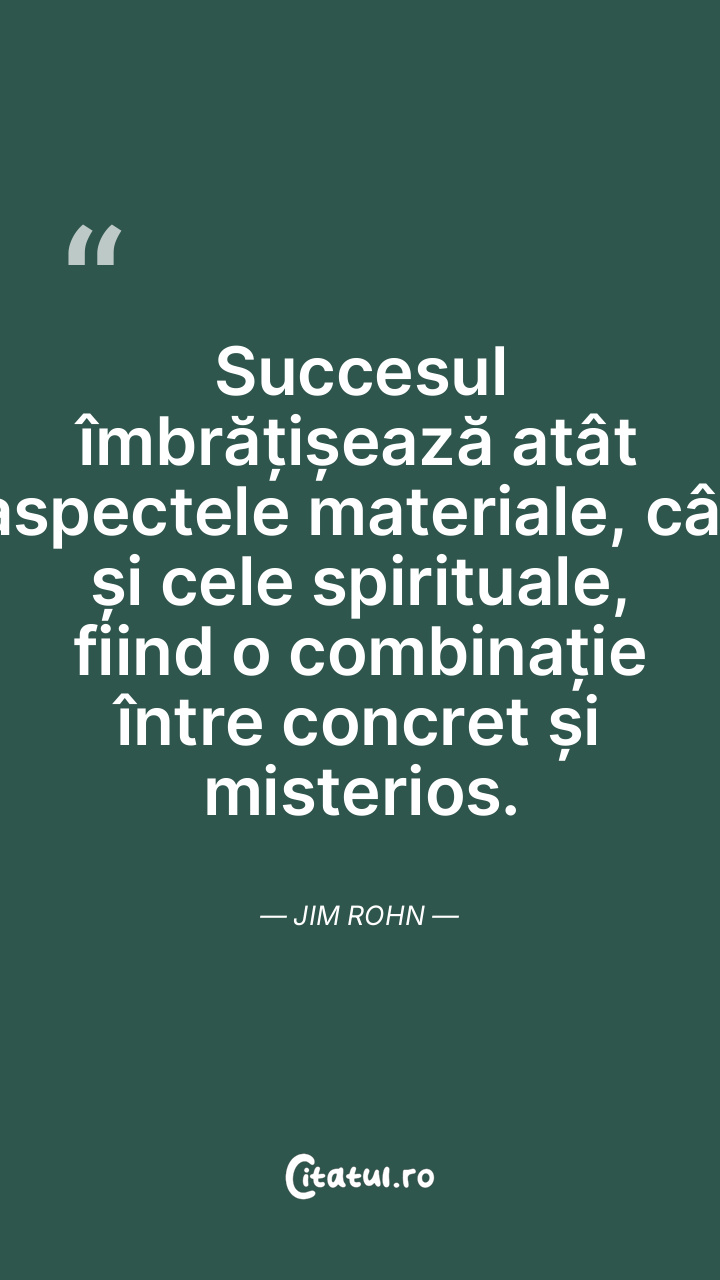 Succesul îmbrățișează atât aspectele materiale, cât și cele spirituale, fiind o combinație între concret și misterios. Jim Rohn