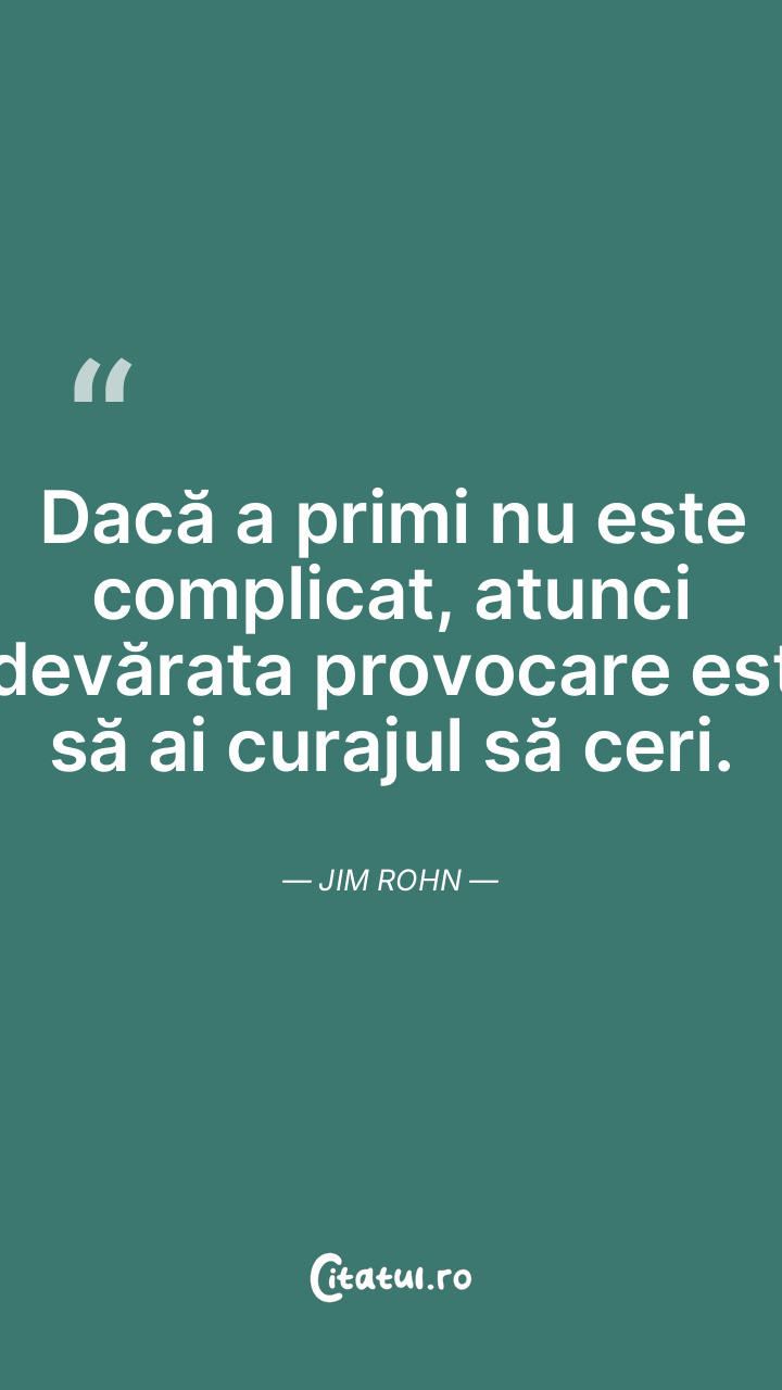 Dacă a primi nu este complicat, atunci adevărata provocare este să ai curajul să ceri. Jim Rohn
