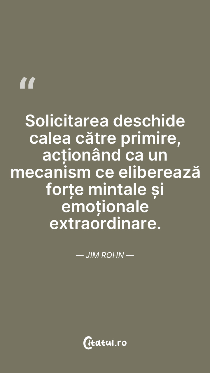 Solicitarea deschide calea către primire, acționând ca un mecanism ce eliberează forțe mintale și emoționale extraordinare. Jim Rohn