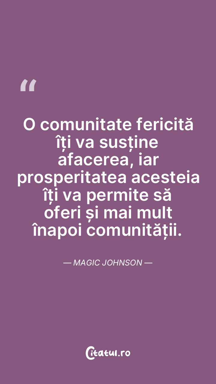 O comunitate fericită îți va susține afacerea, iar prosperitatea acesteia îți va permite să oferi și mai mult înapoi comunității. Magic Johnson