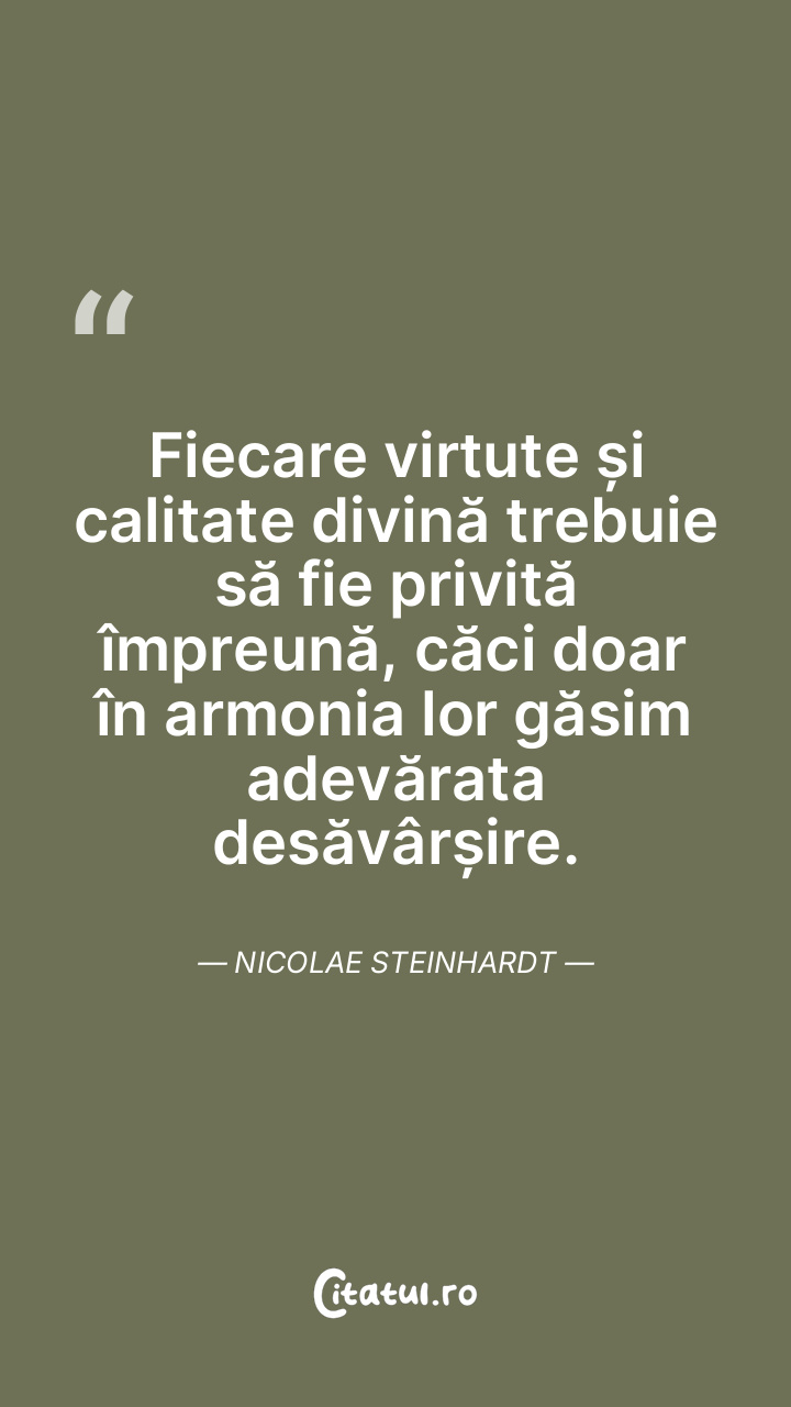 Fiecare virtute și calitate divină trebuie să fie privită împreună, căci doar în armonia lor găsim adevărata desăvârșire. Nicolae Steinhardt