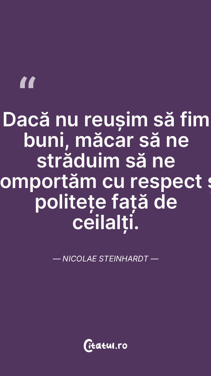 Dacă nu reușim să fim buni, măcar să ne străduim să ne comportăm cu respect și politețe față de ceilalți. Nicolae Steinhardt